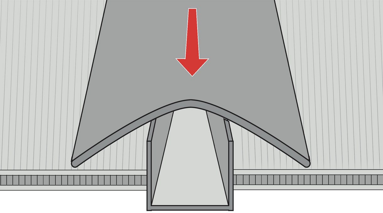 El perfil H, también llamado “perfil clic”, es el encargado de unir las planchas. Se trata de dos piezas, la inferior que va sobre las vigas y la superior, que se le ensambla: